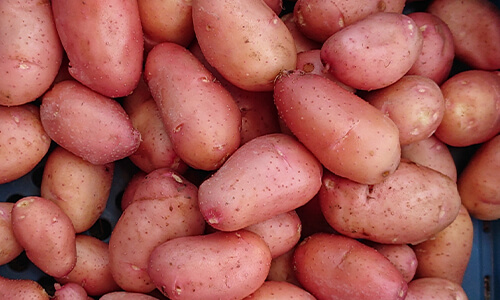 Plantée dès la sortie de l’hiver idéalement fin février, cette variété gouteuse au cycle court nous permet un début de récolte dès la fin Mai. Ronde, rose, de petit calibre, vous apprécierez ce petit gout de noisette dans nos primeurs. Pour préserver la qualité de ces produits immatures et très fragiles, les primeurs sont arrachées et conditionnées à la main…